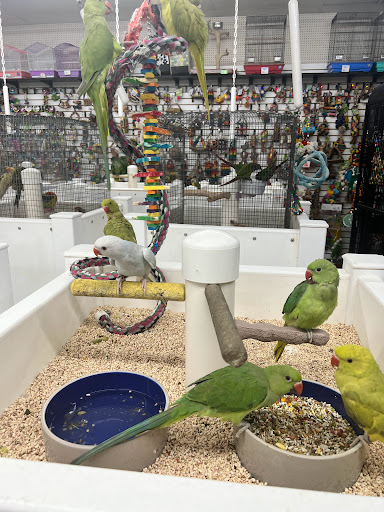 Pet Paradise can be found at Kellam Rd 307. I just left there with our new baby. Many types of birds on display and was able handle most.